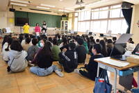 6年生は、立川第七中学校へ授業体験に出かけました。4月から同じ1年生として生活していく西砂小の児童も一緒です。体育館で立川七中の校長先生のお話を伺い、その後、生徒会役員が立川七中の生活についてクイズを交えて説明してくれました。小学生が楽しんでみてくれるように工夫をしたり、ビデオを撮影や編集もこなし、大変だっただろうと思います。頑張ってくれました。ありがとうございました。