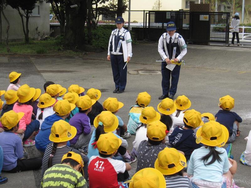 5月10日(火)の2校時に、1年生の交通安全教室が行われました。立川警察署から2名の婦警さんに来ていただき、実際に学校の周りの歩道や交差点を使って、歩行時や交差点での注意するポイントを教えていただきました。まずは、〈自分の身の安全は自分で守る〉からですね。