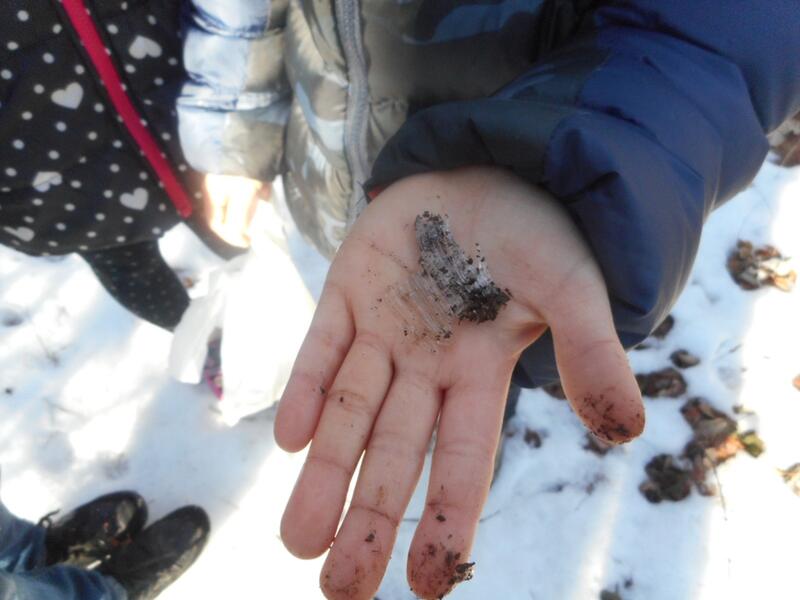 こんな大きな霜柱も発見。冬の季節を十分に感じていました。