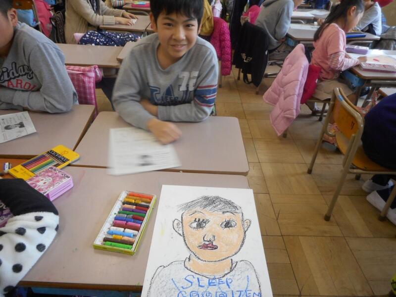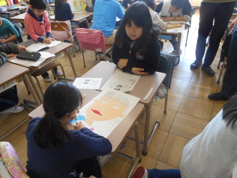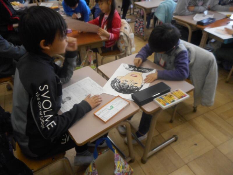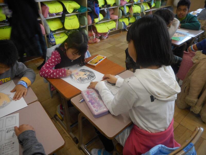 お世話になった、6年生をモデルに、顔の絵を描いているのでした。