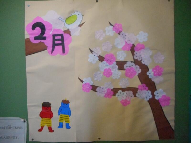 明日は豆まき!そして、校庭のうめのツボミもふくらんでいます!