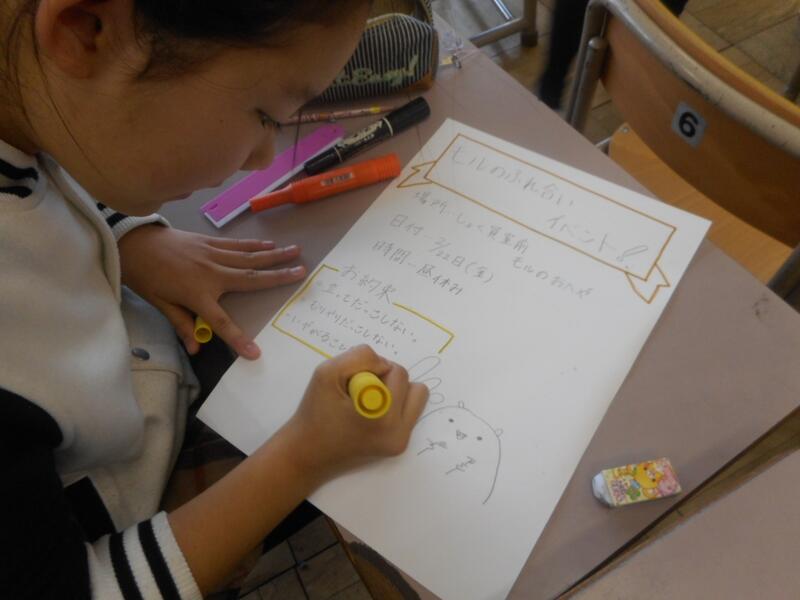 飼育委員のみなさんは、何を作っているかというと、2月に行われる「モルモットとのふれあい」週間のポスターを作っています。