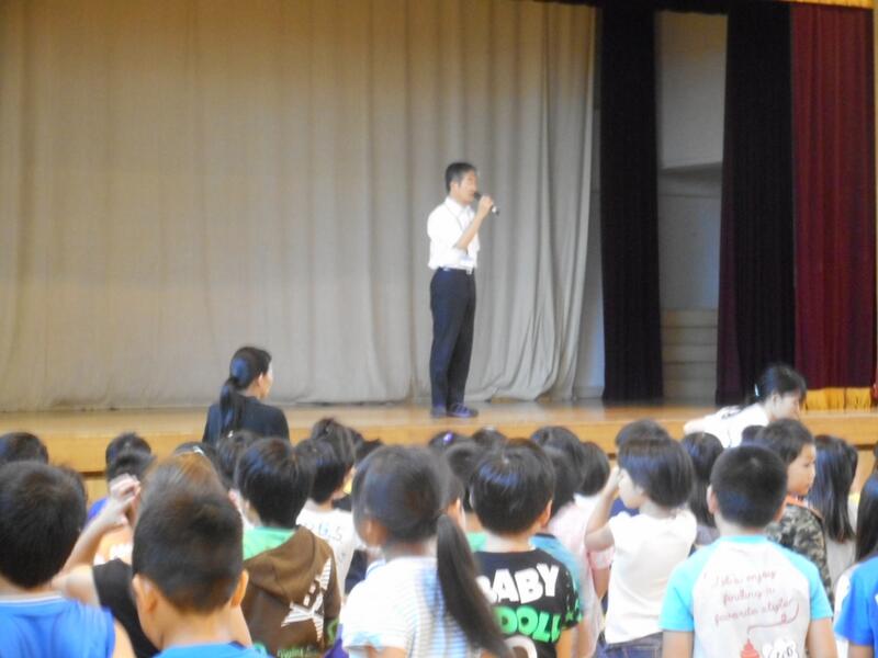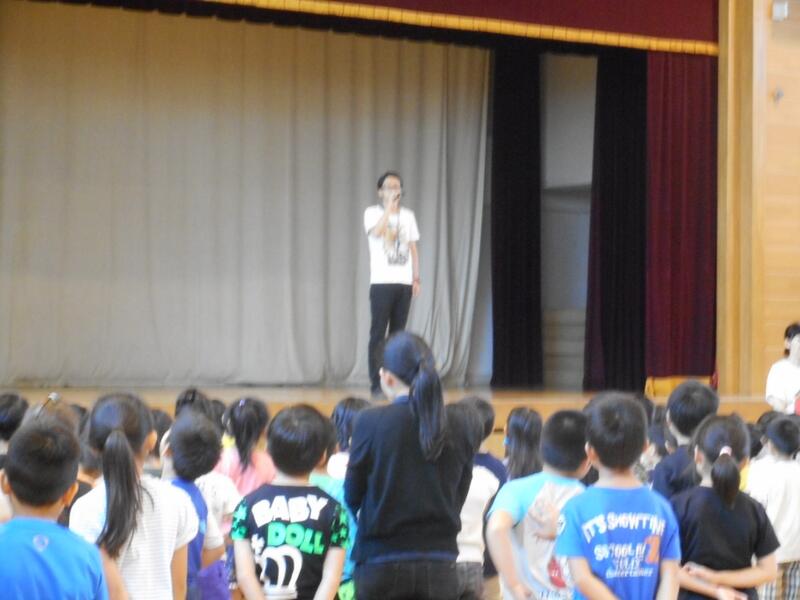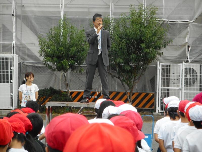 今日の学校朝会。校長先生のお話。校長先生が見つけた一年生から六年生までの練習の頑張りを話しました。そしてそれぞれの目標に向けて本番を成功させましょうというお話でした。