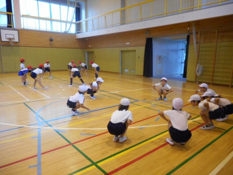 明日は、待ちに待った運動会。今日は各学年最終練習をしました。今日は体操着は洗っているので、普段着で。2年生。ようかいたいそう頑張って!