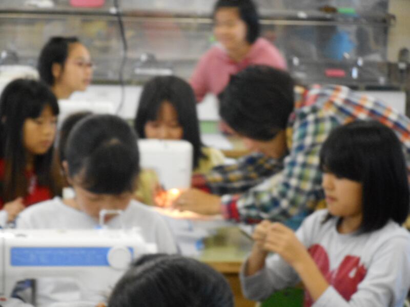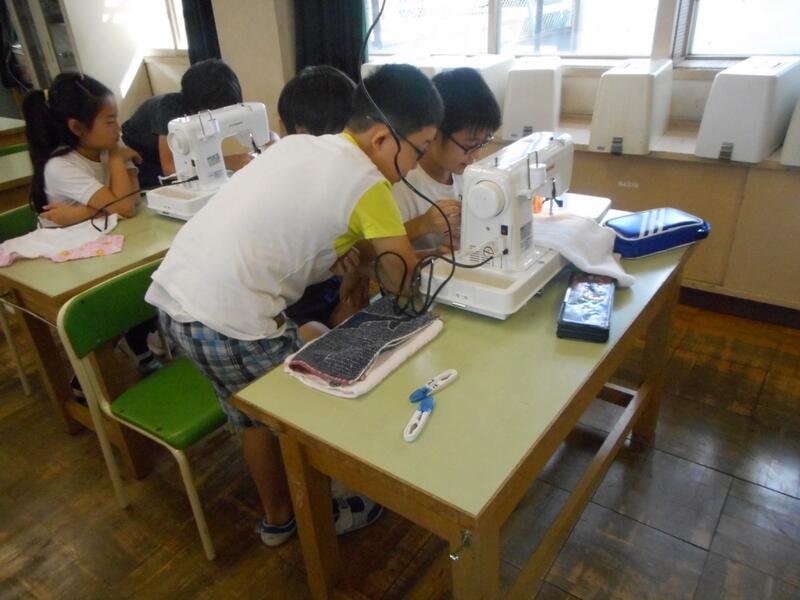 五年生の家庭科。ミシンを楽しそうに使って、制作をしていました。