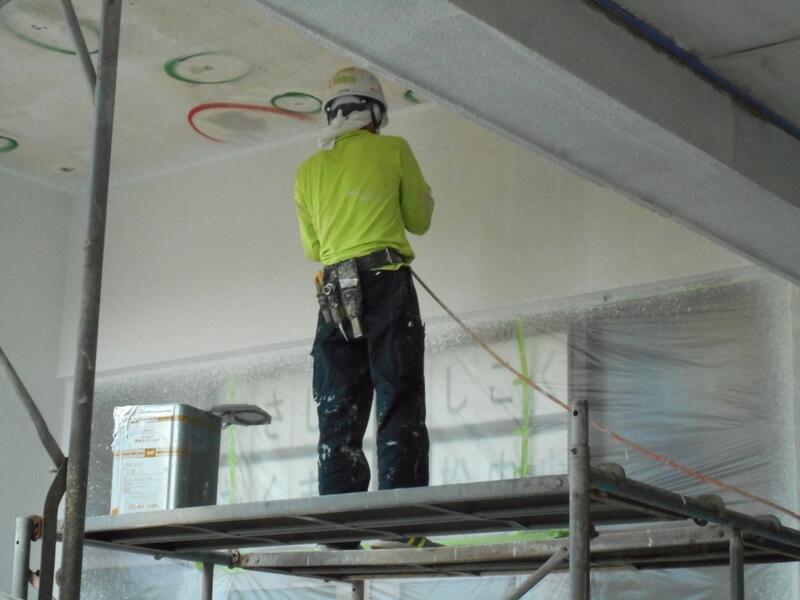 昇降口の外壁塗装は、子供のいるときにやるわけにはいきません。今日土曜日に下塗りを、明日日曜日に上塗りを急いで行います。と言うわけで、数日校内の駐車などについてはご迷惑をおかけします。
