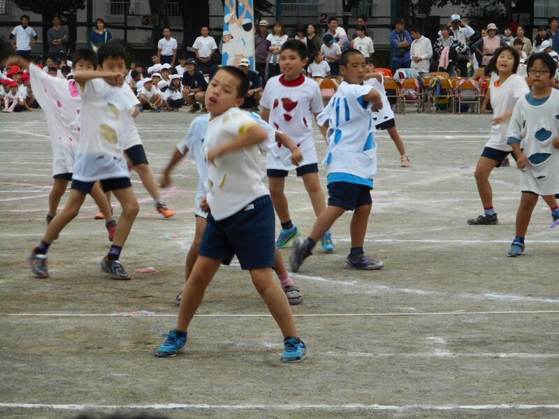 4年生。「スリラー」マイケルに負けないダンスを披露しました。工夫がいっぱい!