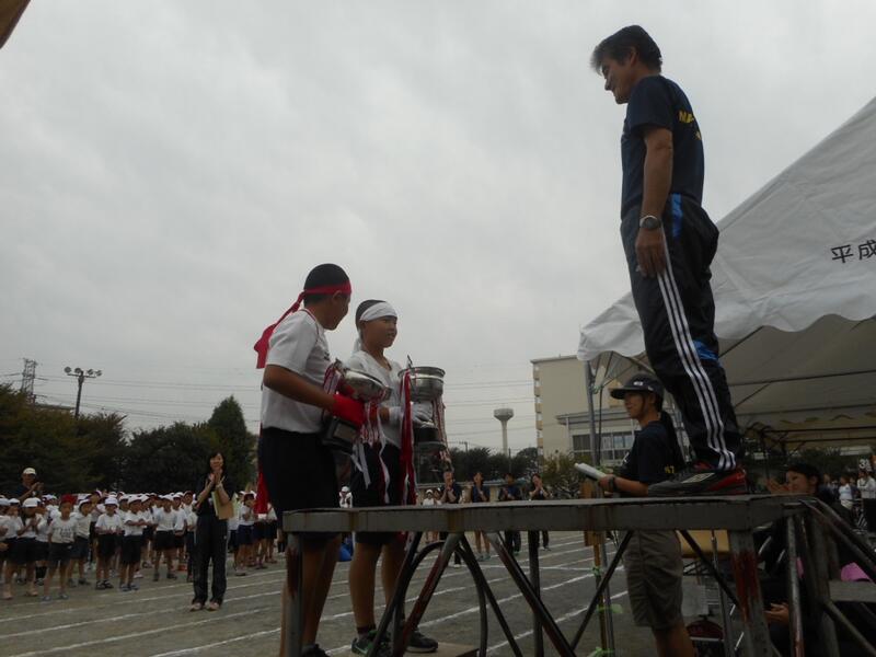 校長先生から、団長に優勝杯と準優勝杯が渡されました。応援団も運動会を大いに盛り上げてくれました!