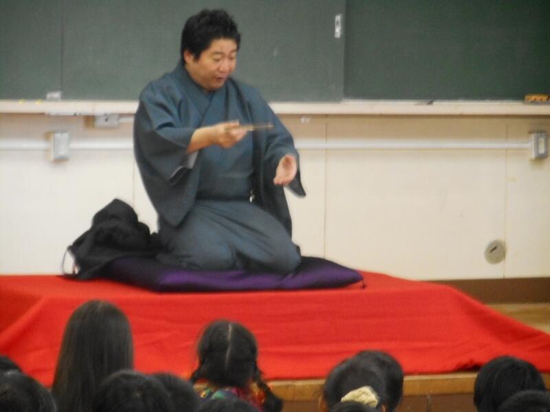 4年生。国語の「落語教室」。立川らくみんさんの、与太郎の活躍も楽しい、『金明竹』。子供たちも思わず引き込まれ笑っていました。らくみんさんは、立川志らく師匠のお弟子さんで前座さんです。元気いっぱいの明るい高座ありがとうございました。