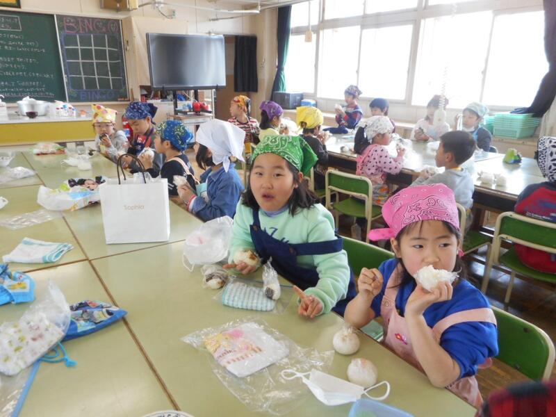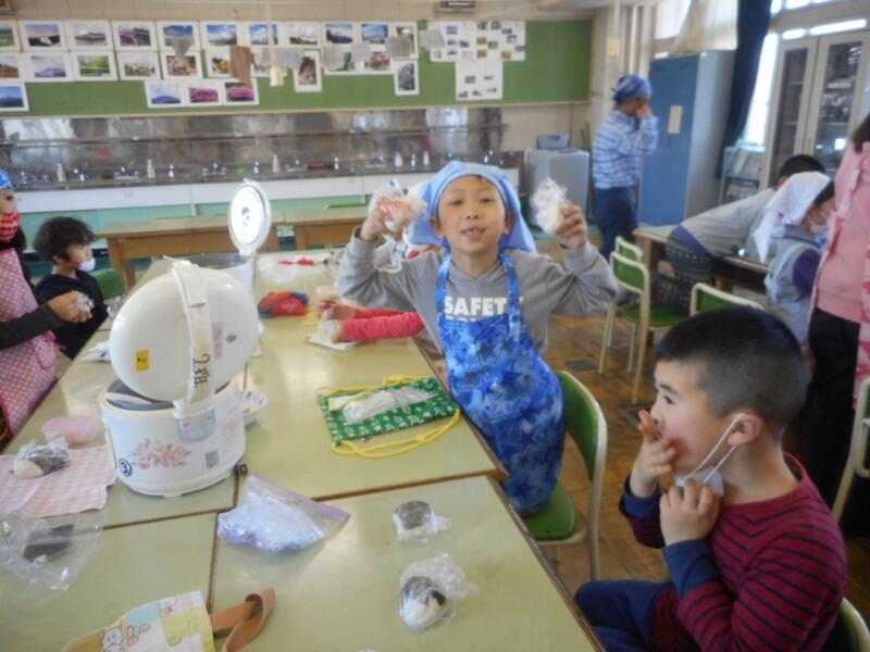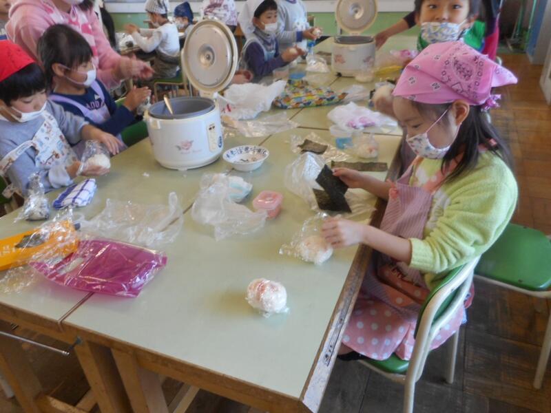 今日は、1年2組がおにぎりパーティーをしました。