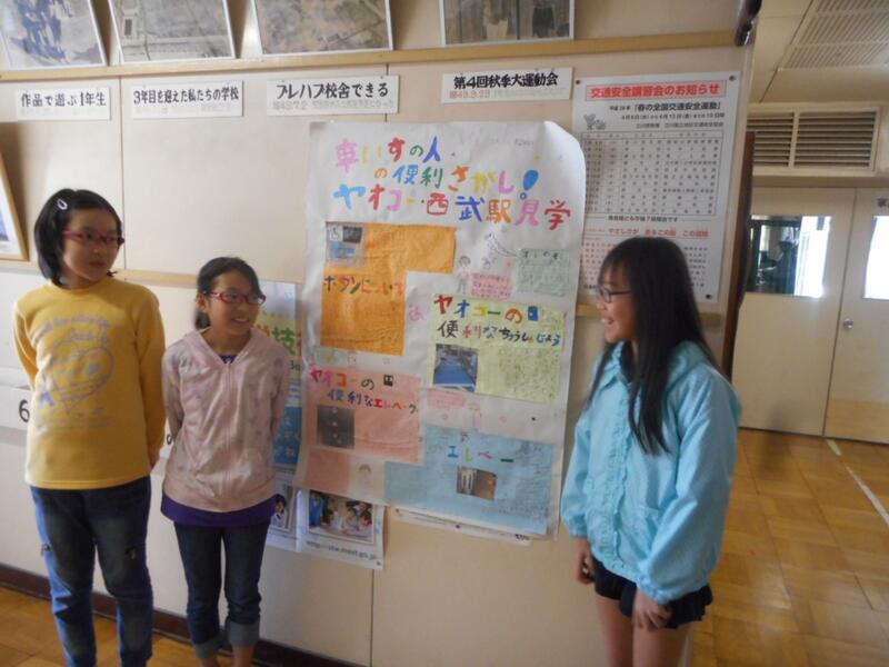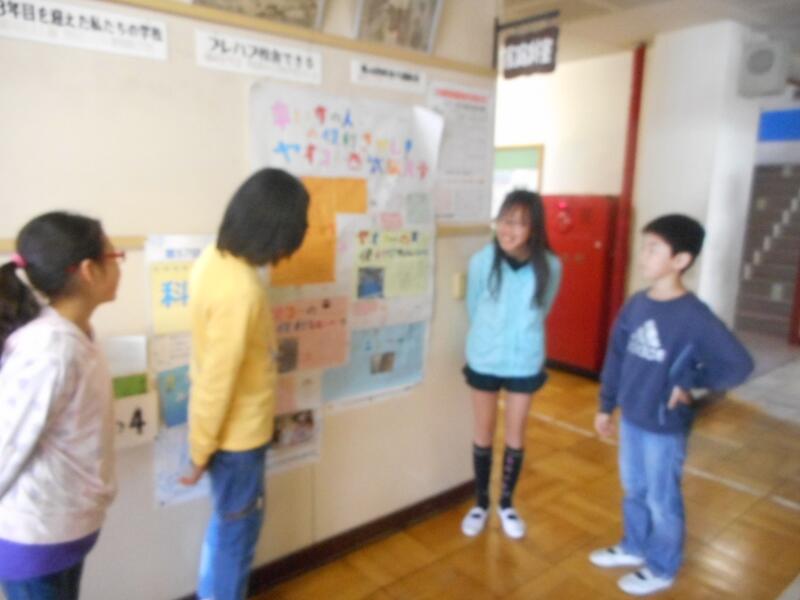 4年生が、出張ポスターセッションを行っていました。職員室前の廊下でも、