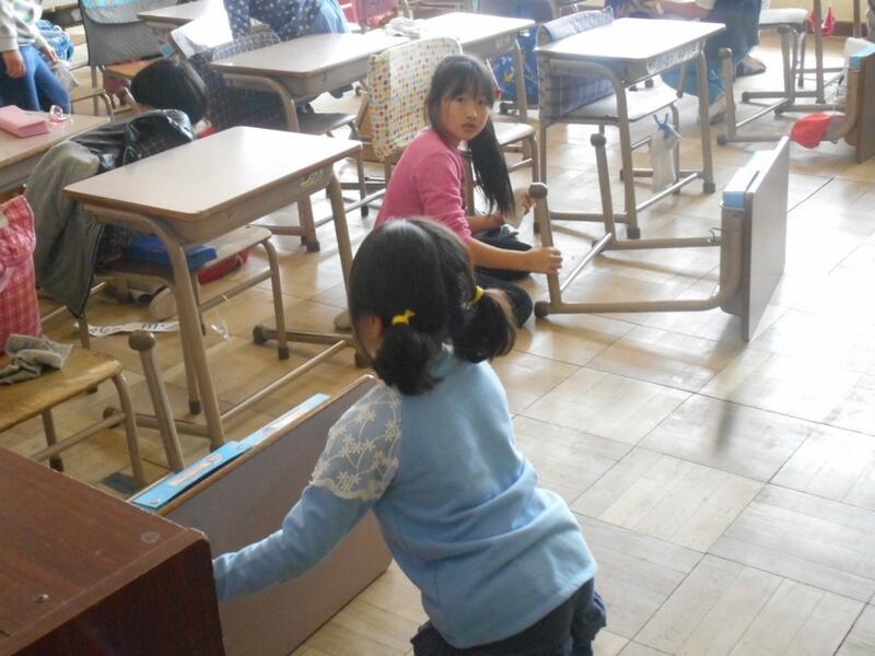 みんなで、雑巾がけをしたり、椅子を運んだり。偉いぞ5年生!