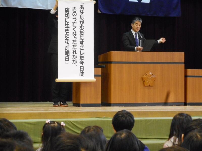 校長先生のお話。今一瞬を大事に生きましょうというお話でした。