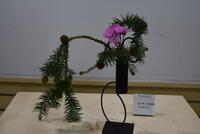 玄関のお花は、モンキーパズルツリーとピンクの菊で生けられています。スッキリとした最近の空気を表すようでもあり、穏やかで優しい空気を纏っています。ホッとしますね。