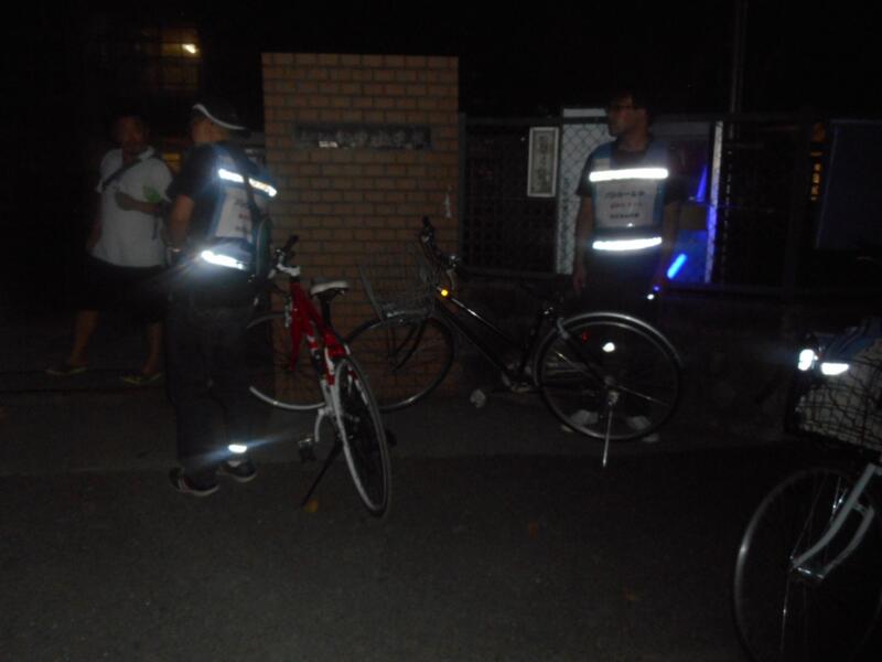 PTA会長俣本さんをはじめ、有志のお父さん方が、夏休みの間「夜の防犯パトロール」を実施しました。27日(木)の最終回に校長先生を始め4名教員も参加しました。総勢11名です。装備も気合いもばっちりです!21:00に出発しました。