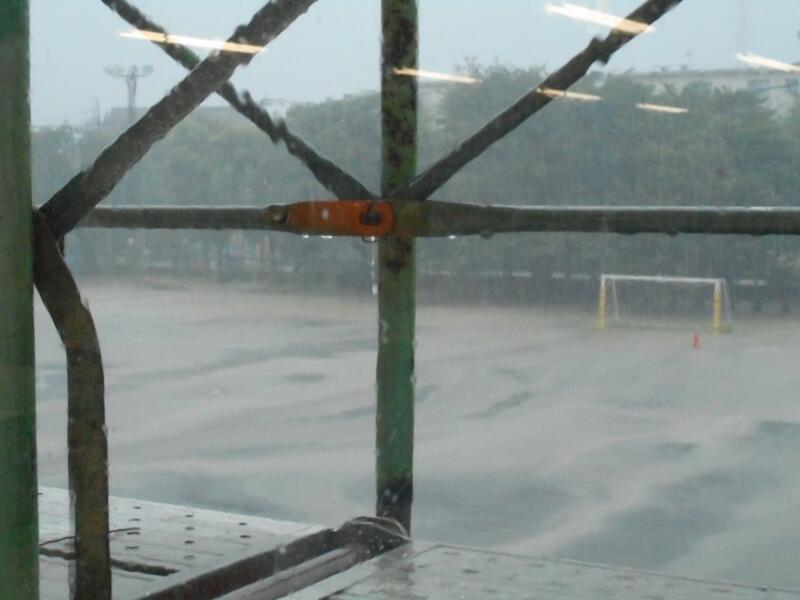 今日も、水泳指導が無事に終わったとほっとしたのも束の間、にわかに暗くなり、雷雨で校庭が水浸しです。ちなみに、校舎の塗装工事が始まり、足場を組んでいます。この雨の中でも、工事の方々は作業をしていました。さすがです。保護者地域の皆さま、ご来校の際には、工事車両や資材などに気を付けてお入りください。