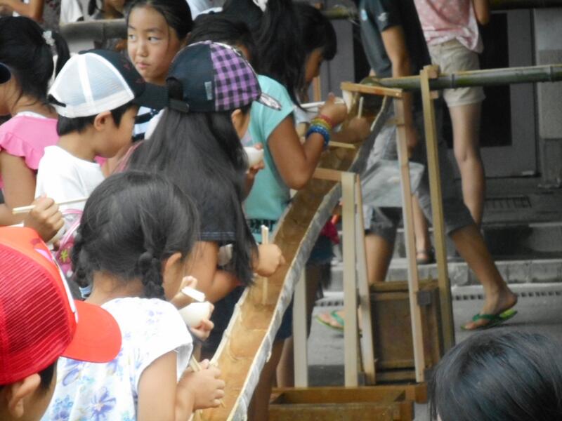 本日、放課後子ども教室主催「流しそうめん」大盛況でした。