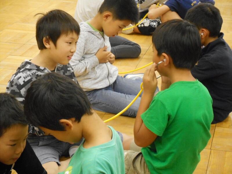 3年生 からだ探検の授業! 投稿日時 : 2015/10/15 副校長 今日は、学校医の平田先生による、3年生の「からだたんけん」の授業がありました。聴診器を使って、心臓の音を聞きました。子供たちの質問に、平田先生が丁寧に答えてくれました。