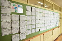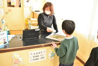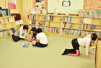 図書館の前の廊下には、おすすめ本カートがぎっしりです。中には7枚ものカードを連ねてくれている子もいます。 中では、まつのみ学級の図書の時間でした。返却や貸し出しの手順も迷いなくスムーズです。一人で本の世界に入る子、お友達と内容を共有して楽しむ子など様々です。