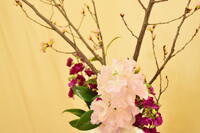 玄関のお花は、椿。凛とした清々しさがあります。階段下には、スイトピーにストック、桜の枝は、花がほころび始めています。少し季節を先取りです。学年がまとめの時期にきていることを知らせてくれているようです。