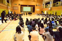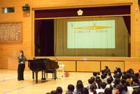 今朝は、2~6年生の音楽朝会が開かれました。1年生に校歌を紹介する準備です。のびのびとした歌声が体育館いっぱいに響きました。音楽の先生から歌唱の仕方について「息継ぎは、ここ!こんな風にうたってみよう」と指導されると驚くほどに表現が変わります。