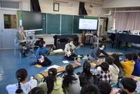 今日は、ゲストティチャーがたくさんいらっしゃいました。4年生の音楽には、琴 三味線 尺八の演奏とご指導に4名の方々が。書き初めの指導に佐藤前校長先生が来てくださいました。体育館で学年合同で取り組みました。