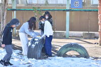 休み時間は、校庭に昨日の雪がまだ少し残っていたので、小さな雪だるまを作ったり雪に手触りを楽しんだ理していました。気温が低かったので、びちゃびちゃになっていない雪に「パフパフだね」「指でつぶすとたらこみたいな感じがする」と感性をはたらかせて話してくれました。