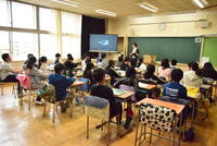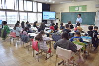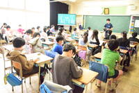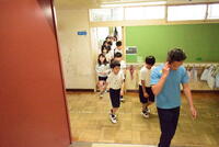 4年生は、外国語と体育と の学習をしていました。先生の発音に合わせ果物の発音を繰り返していました。聞き馴染みのない英語もあり「へー」と感心する姿もありました。体育もしっかりと指示を聞き、活動していました。時折花吹雪も舞って、素敵な風景でした。身体計測に出かける様子も周囲のクラスに気を配り、静かに移動していきます。