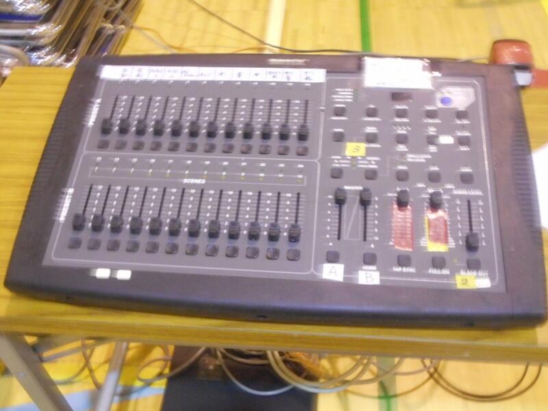 今日は、体育館で演劇発表会の機材のセッティングを行っていました。これは照明のコントロールをするようです。