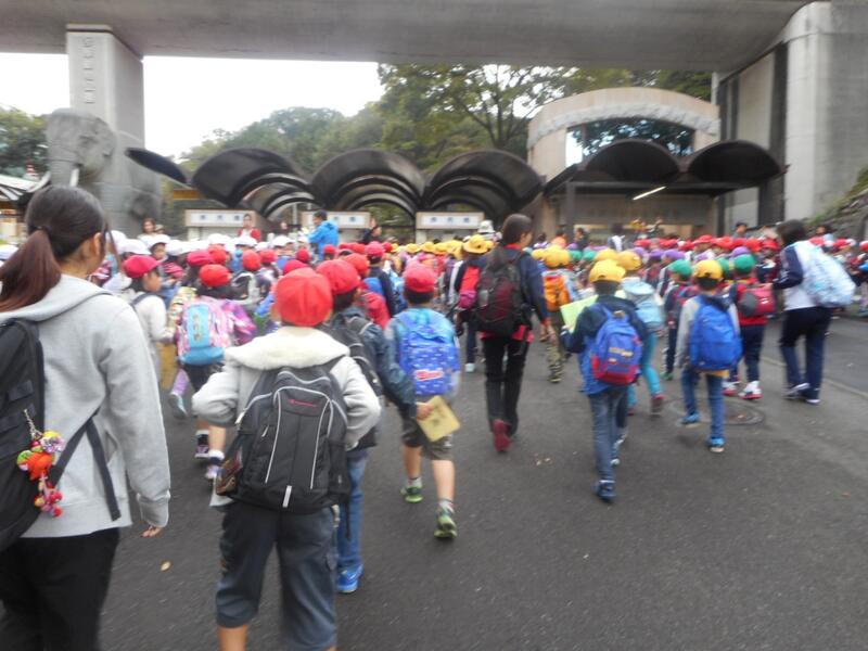 9:30の開門直前には、たくさんの小学校、保育園、幼稚園、アメリカンスクールなど、たくさんの人でごった返していました。でも、迷わず・はぐれず、しっかり列になって移動しました。