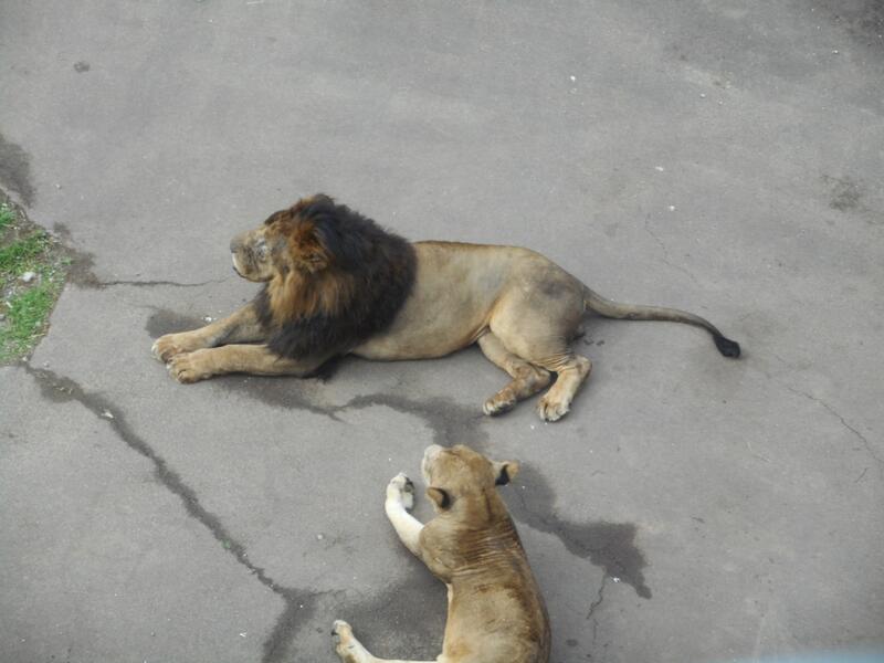 ライオンの夫婦。今日はなぜか雄ライオンが何回も吠え続け、アフリカ園中に響きわたりました。