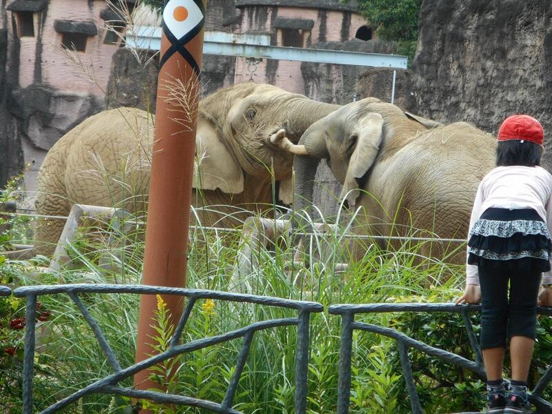 ゾウだぞう!なぜか牙を激しくぶつけ合って、すごい音。子供たちも興味深げに見ていました。