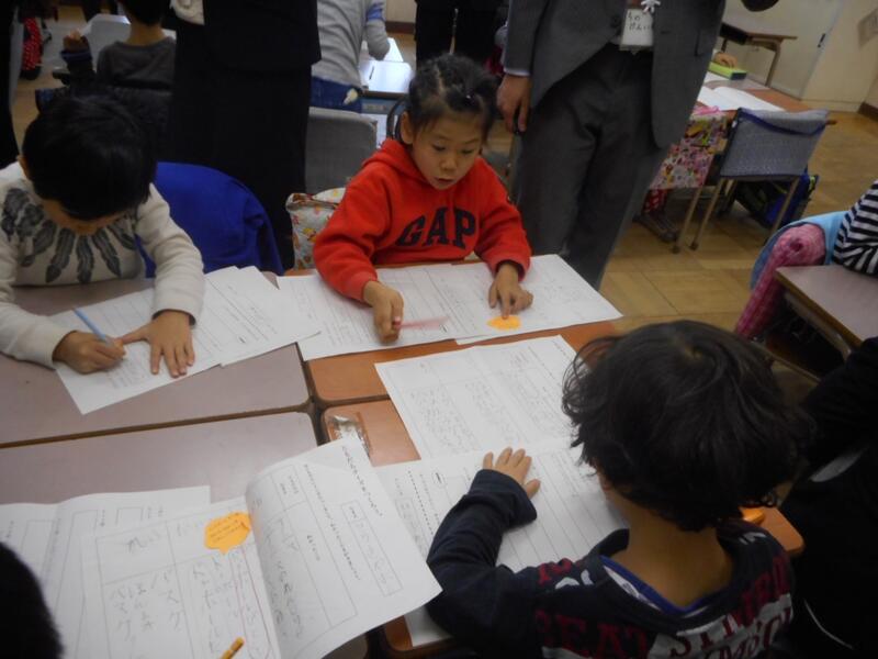 班で話し合いながら、クイズを作ります。1年生でも随分協力できるなと