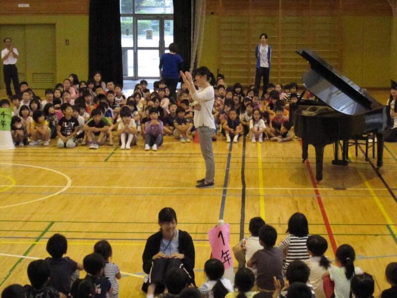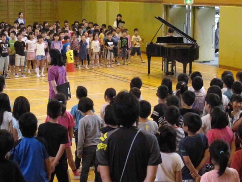 6月15日(水)は、音楽朝会でした。「にじ」という歌を、1回目は皆で歌い、2回目は幸島先生に合わせて振りをつけながら歌いました。