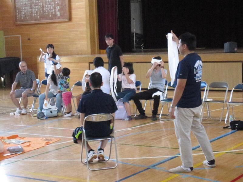 6月18日(土)午前中に体育館で、松中小「お父さんの会」主催の救命講習が行われました。「お父さんの会」メンバーで、現役の東京消防庁救急救命士でもある奥川 高史さんを講師として、心肺蘇生やAEDの使用方法、三角巾の使い方について丁寧に教えていただきました。大人と子供合わせて7家族16名の参加者があり、和やかかつ真剣に取り組まれていました。奥川さん他3名の「お父さんの会」メンバーと保護者で看護師をされている高根澤さん、準備から指導補助・後片付けとご苦労様でした。