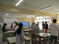 先生たちは、それぞれの教室で授業を行う内容を自らが児童側として体験することで、マスターしている様子が見られました。どの先生からも活気あふれる学びの姿が見られ、とても頼もしく感じました。
