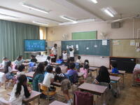 イングリッシュ・キャラバンは、東京都教育委員会が主催しているもので、本校では毎年応募をして取り組んでいます。対象の学年は、4年生〜6年生です。