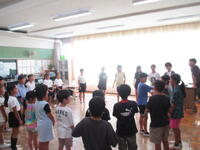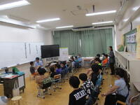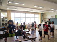 終業式の後、生活指導部の先生方が、劇仕立てで、①夏休み、規則正しい生活をしながら、学習と体を動かすことを両立すること、②水遊び(=プールや海水浴等)では、お家の人の目の届かない危険な場所まで泳がないこと等について、伝えてくれました。そして、生活指導主任の先生からは、夏休みの生活のルールについての確認がありました。先生方の熱演!?によるロールプレイで学んだことにより、子どもたちは大盛りあがりでしたが、しっかりとそれぞれの心に夏休みの生活において守るべき内容が刻まれたと思います。
