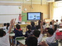後半には、図書委員会と先生たちが分担して、各学級で読み聞かせを行いました。絵本を見せながら読んだり、電子黒板上に本を映して読んだりするなど、様々な形での読み聞かせが展開されていて、子どもたちも楽しむことができたと思います。これからも自分のペースでいいので、読書を続けることを大切にしてほしいと思います。