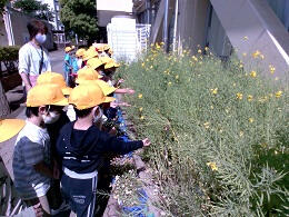 花の名前を教えていただき、「マリーゴールド!」と繰り返し名前を言っていました。防虫剤にもなる、香りが強いお花と聞いて、においをくんくん。