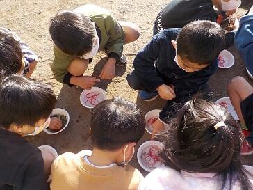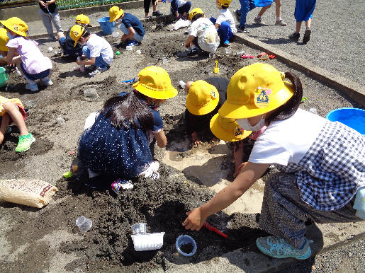 「もう少し深く掘らなきゃかな。」自分で考えながら植える様子が頼もしかったです。