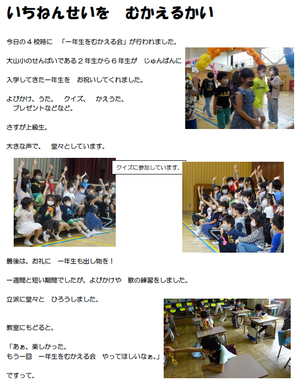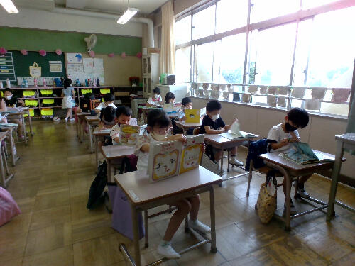 今週は、月曜日から一年生の元気のよいあいさつが2階教室に響きわたっていました。