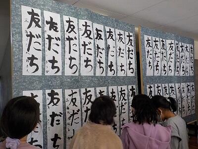 書初めでは、皆集中し、お手本をよく見て丁寧に書くことができました。
