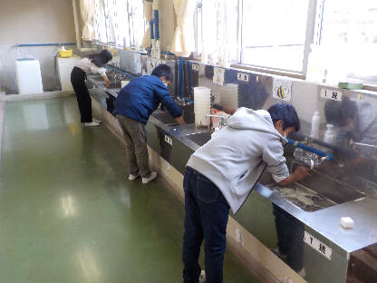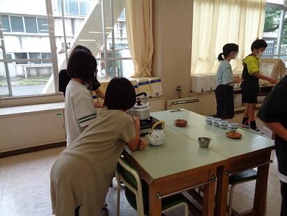 調理中の子どもたちは、班のメンバーと声をかけ合いながら、協力して活動をしていました。