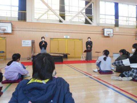今、音楽の授業でお琴などを学習しています。初めて実際の音色を聴く機会となる子も多く、この日をとても楽しみにしていました。