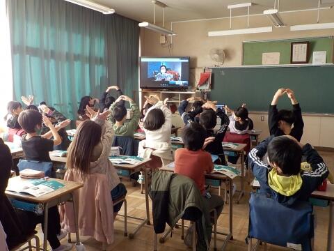 体育委員がお手本を見せてくれます。5年生も大活躍!