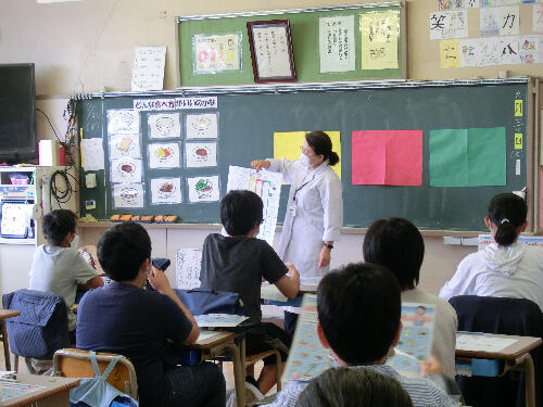 身体測定の前に養護のM先生が感染症についてクイズ形式で話をしてくださいました。感染症について正しく知ることが予防にもつながると感じました。