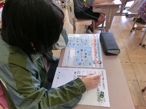 次の写真の様子は、数学を選択した子の様子です。関数の学習をして、一人一人が問題を解いていました!
