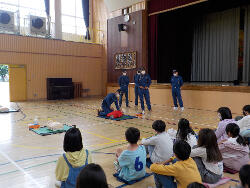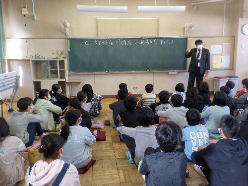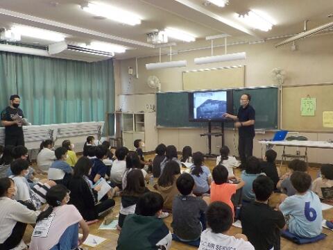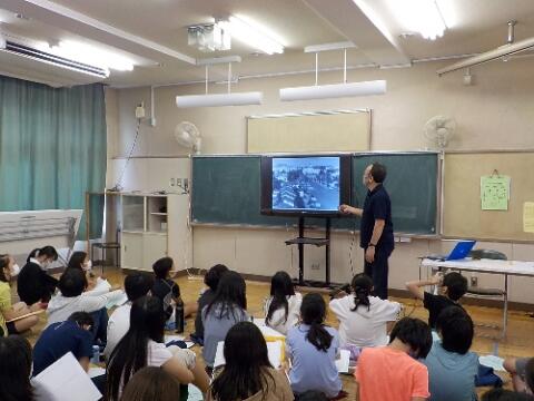 昔の様子を写真と合わせて講義をしていただき、子どもたちもとても真剣に話を聞いていました。今の様子とは全く違うことから驚いている様子の子もいました。