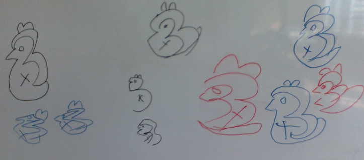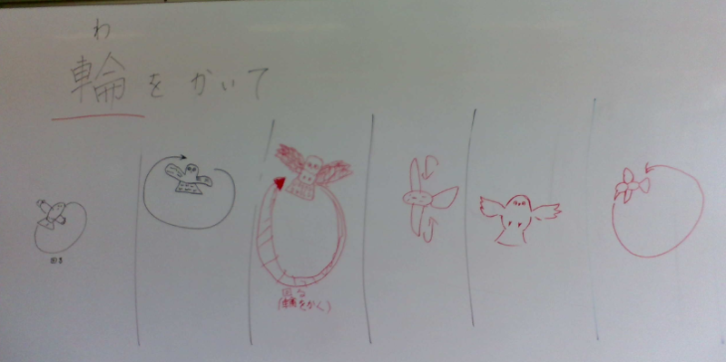 初めはクラスの前で絵を描くことに積極的な子どもたちが少なかったのですが、友達の頑張りやできあがった絵を見て「やってみたい。」「一緒に描いてみたい。」という声があがりました。